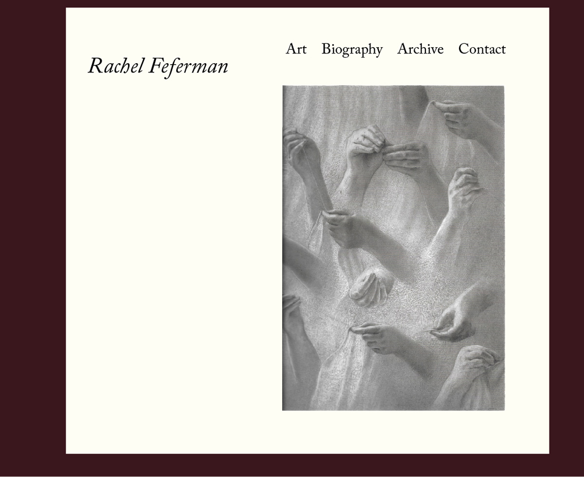 Each one uses two images so you see the different feel depending on the background. We can have a different image come up each time a person visits or a slideshow to show the range of Rachel's work or both.